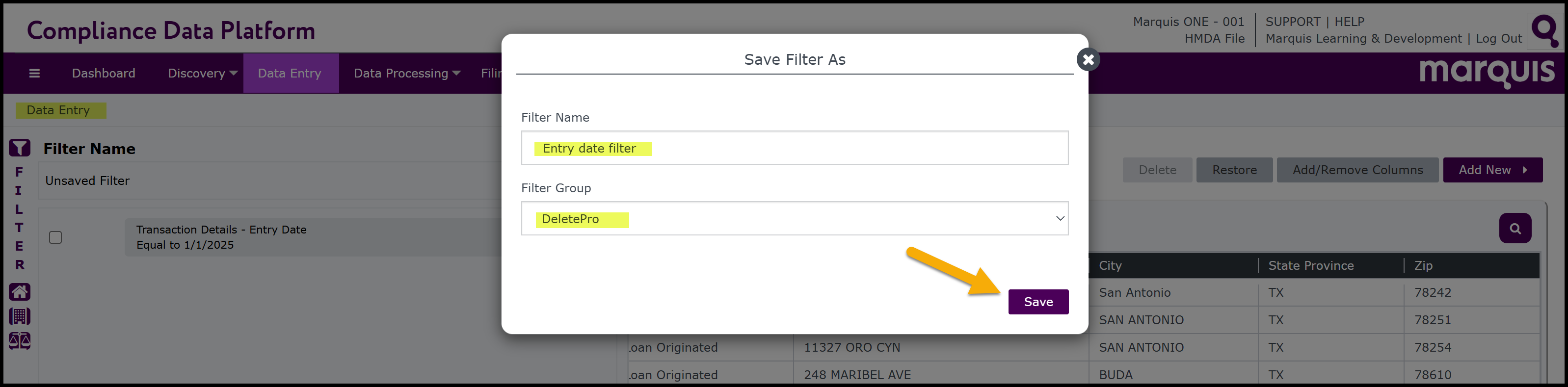 Note: To set up a new DeletePro template, a filter must first be created and saved. This filter could be set for "Entry Date" of the date of import that needs to be purged. This filter will identify any record imported on that day. Filters may be created and saved in Discovery>Research or Data Entry. Once a filter has been created and saved, it can be selected and applied in DataPro.