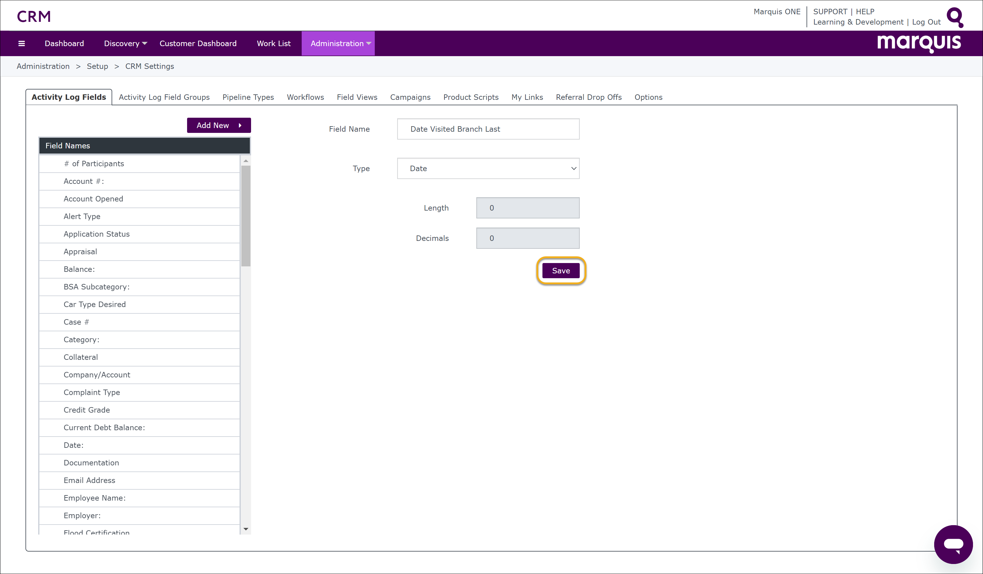 CRM Creating Activity Log Fields: Date Fields