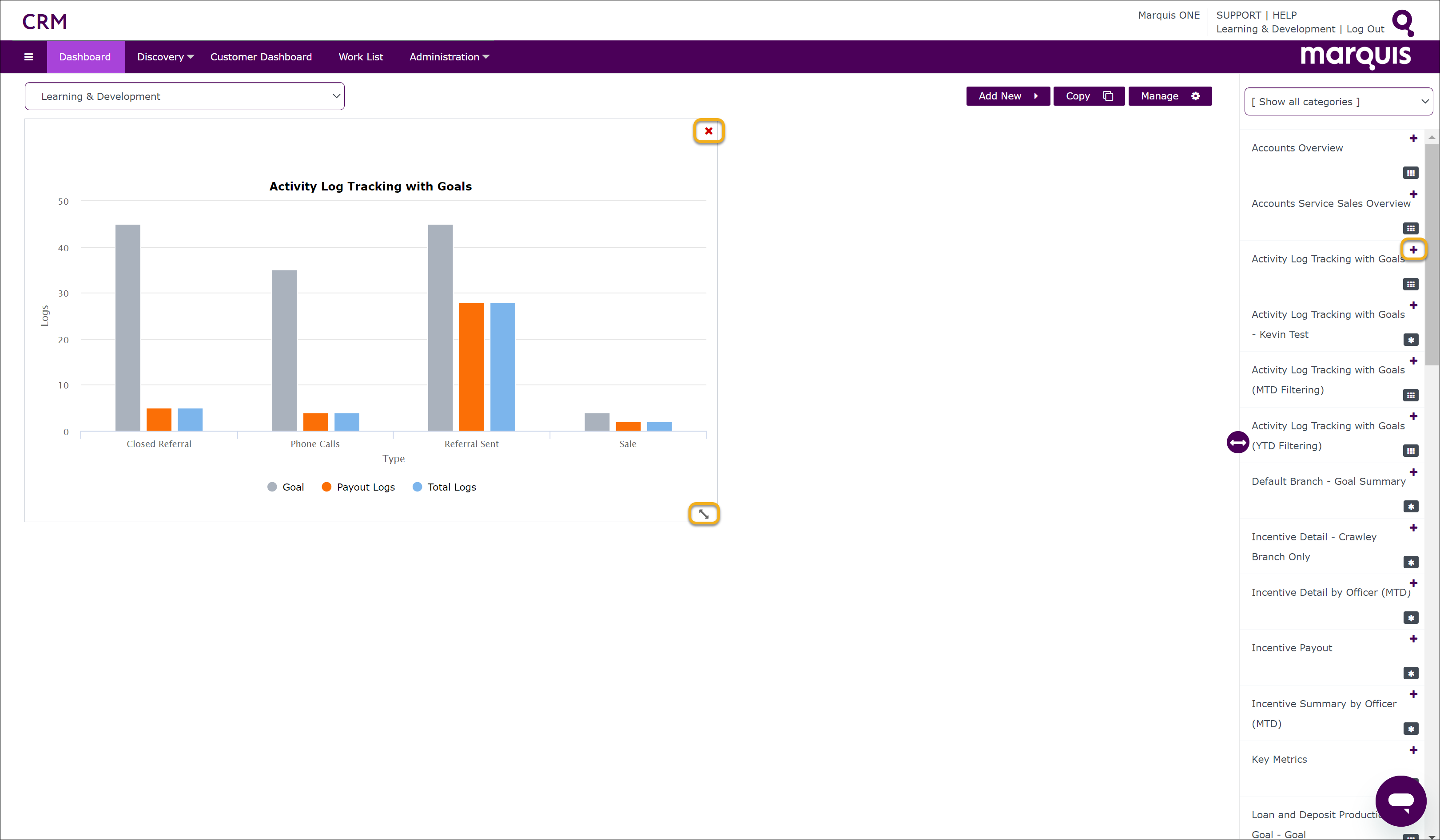 4.2 Locate a report within the list and click the plus symbol to place it in the dashboard