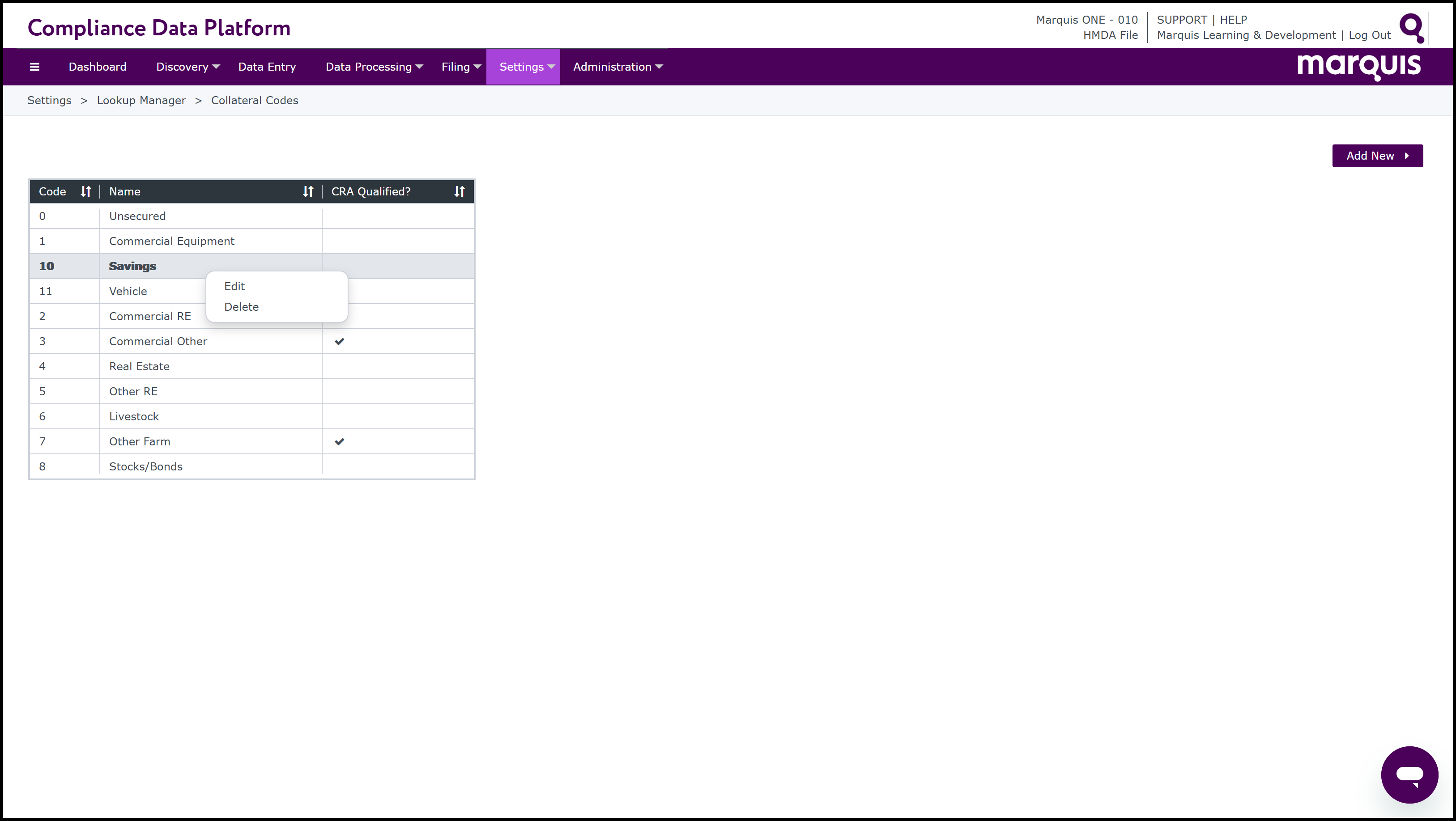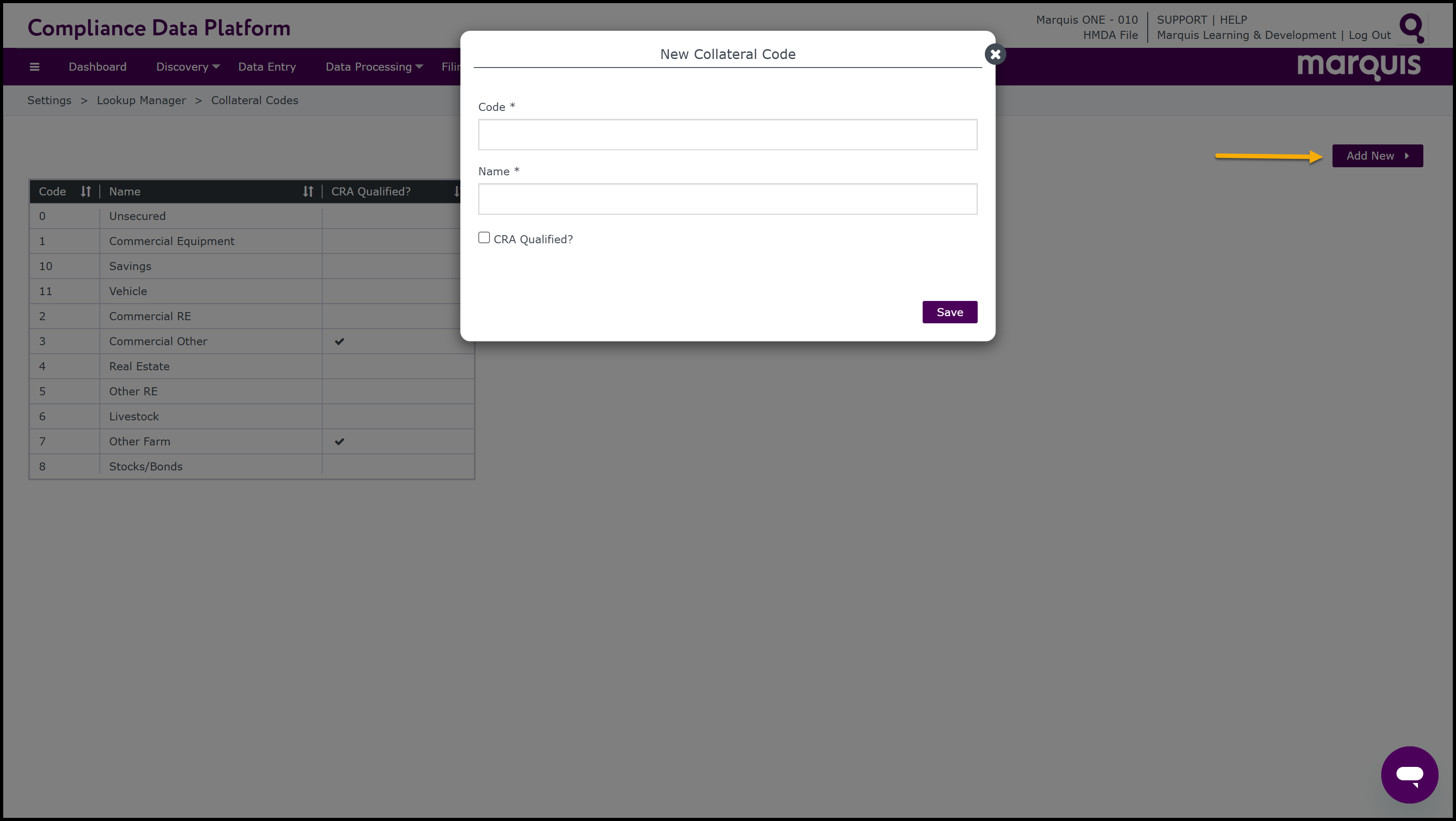 The following procedures will outline the steps for adding and managing any Collateral codes