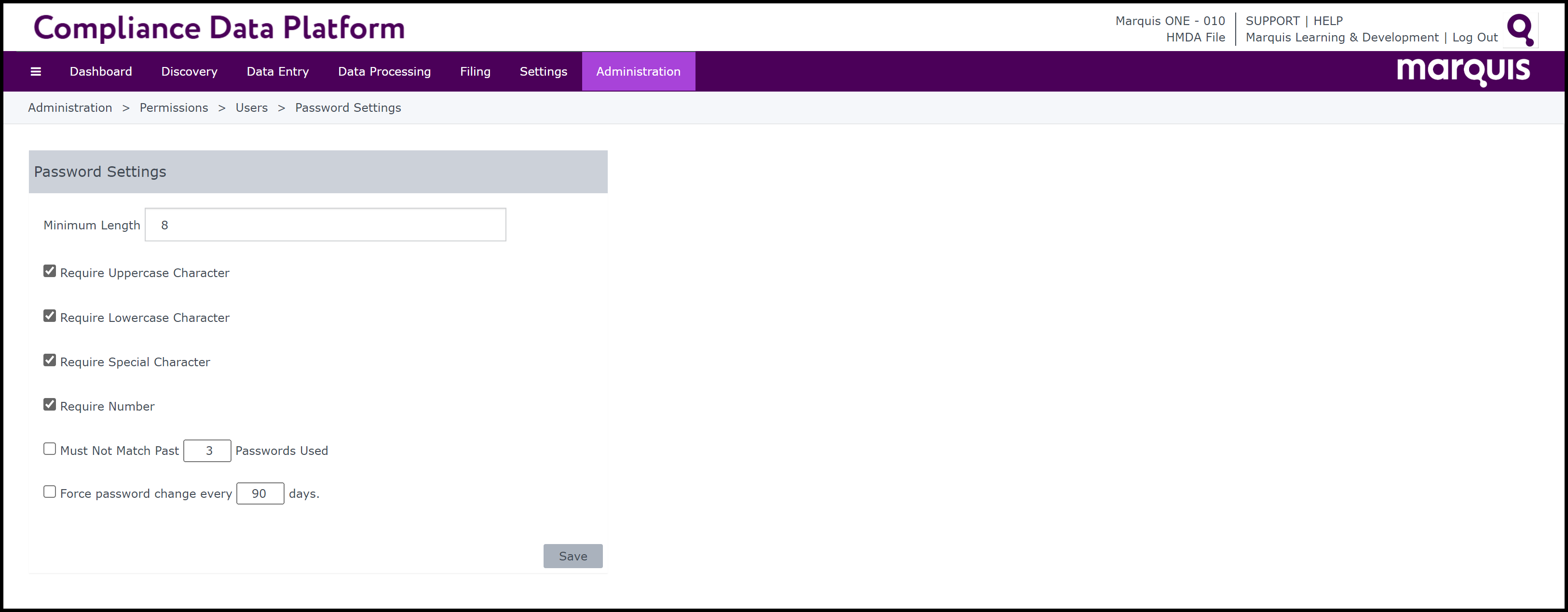 Step 11 To alter the password requirements, return to Administration/Permissions/Users, and click the Password Settings button in the top right-hand side of the page.