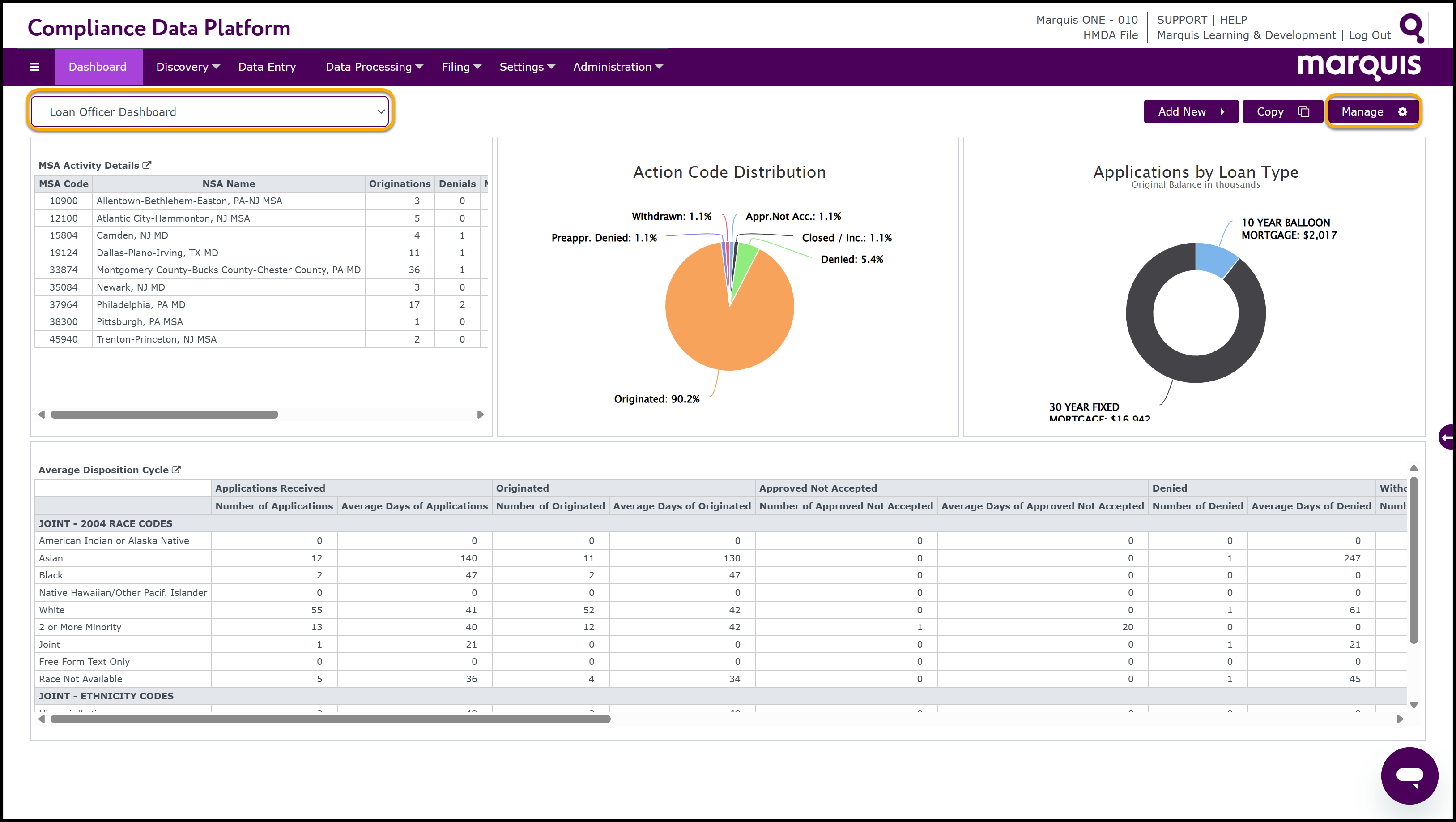 3.2 Click the Manage Dashboard button located in the upper right hand corner