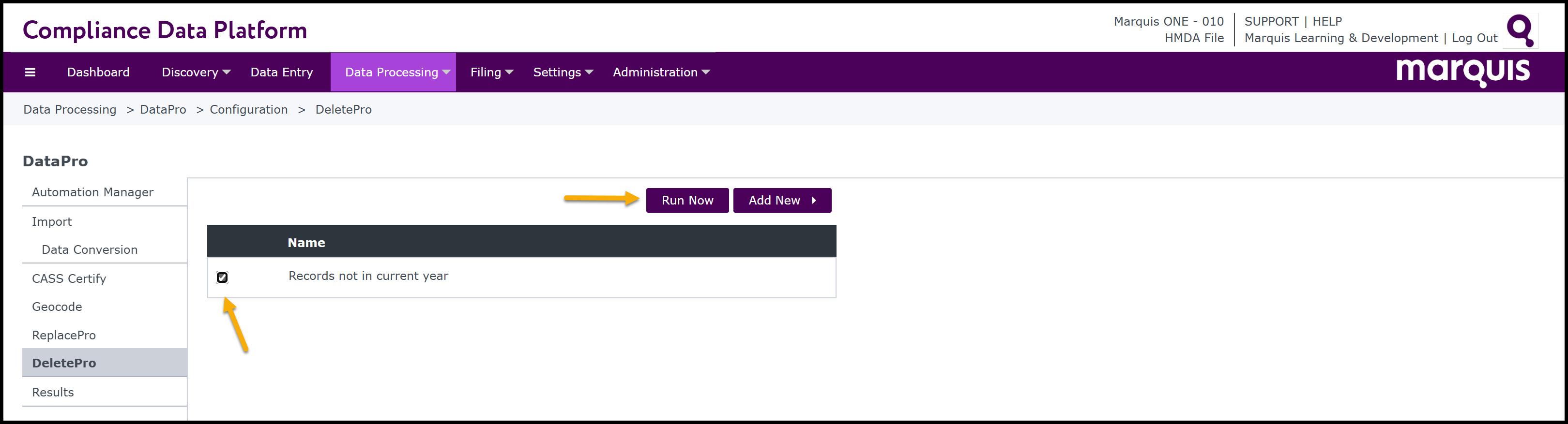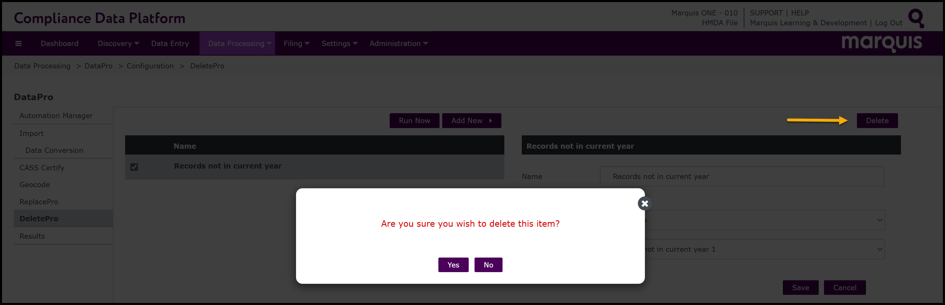 Note: While the delete can be run manually here, it can also be set up to automatically processed within the Automation Manager.