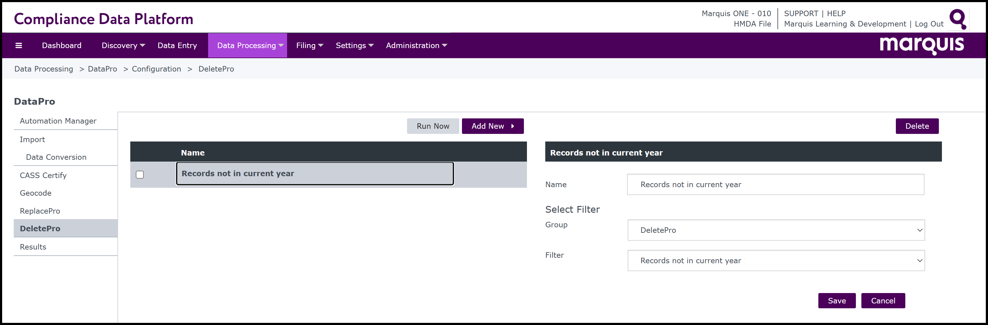 Note: DeletePro items require a saved filter be applied so the filters must be created and saved within Discovery/Research before building the replace. Please refer to CNX402 Research – Filtering.pdf for procedures on how to build and save filters.