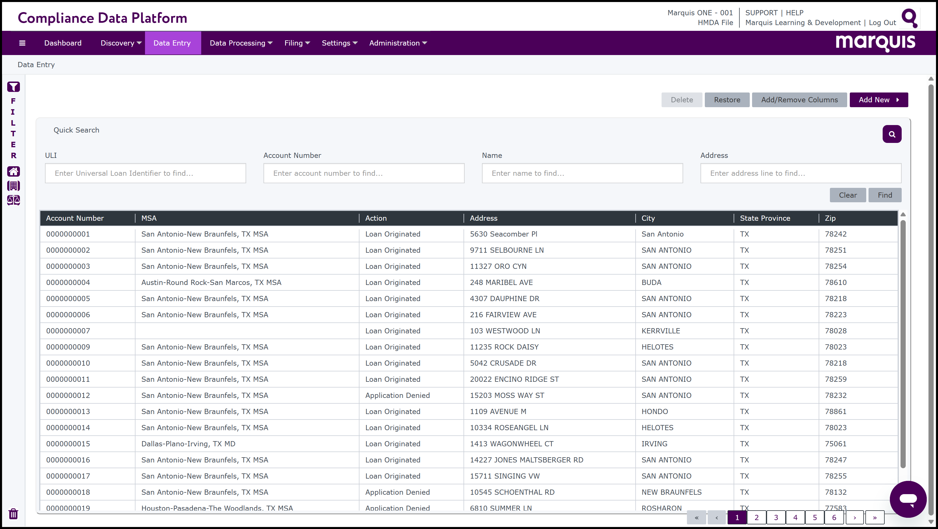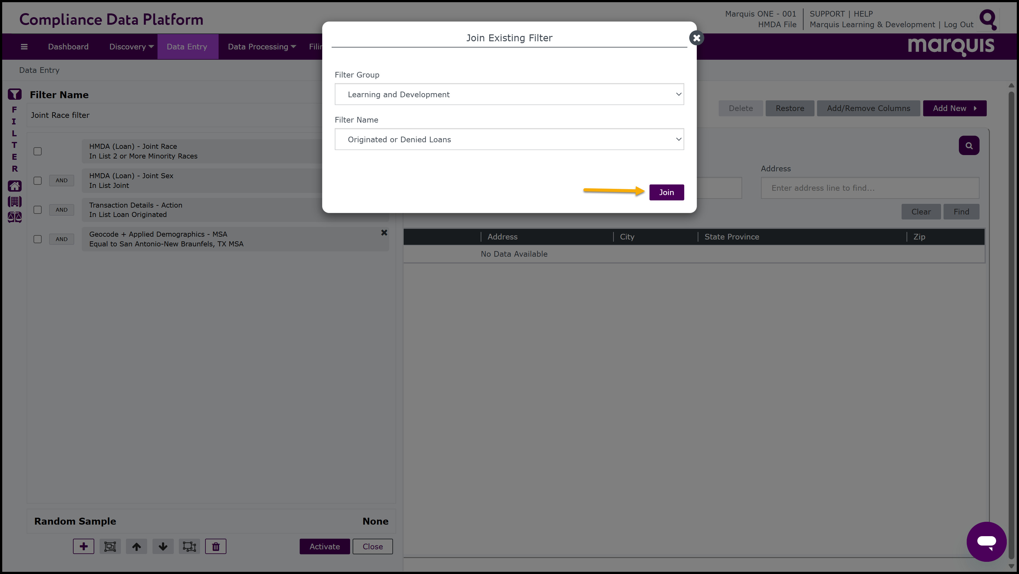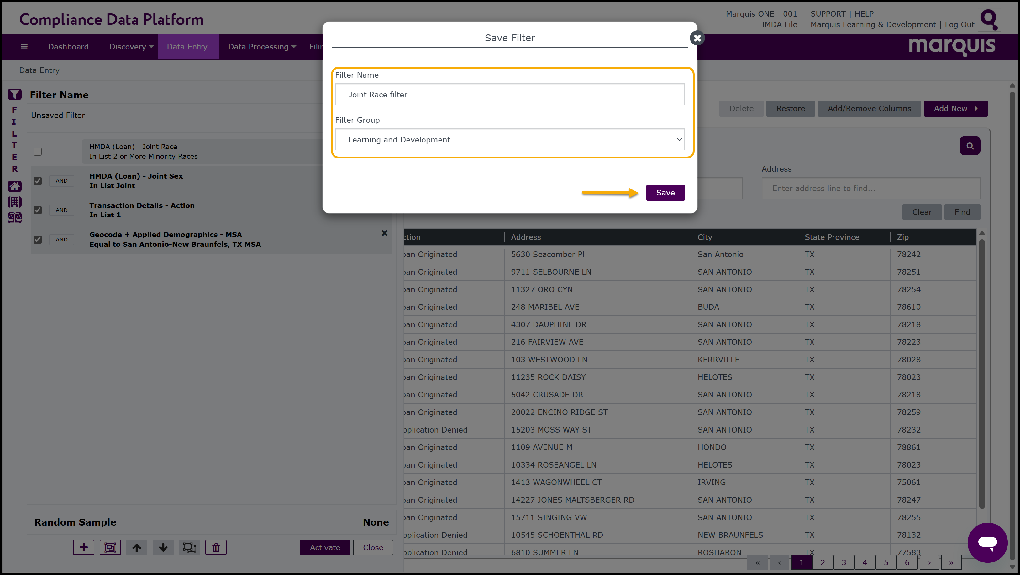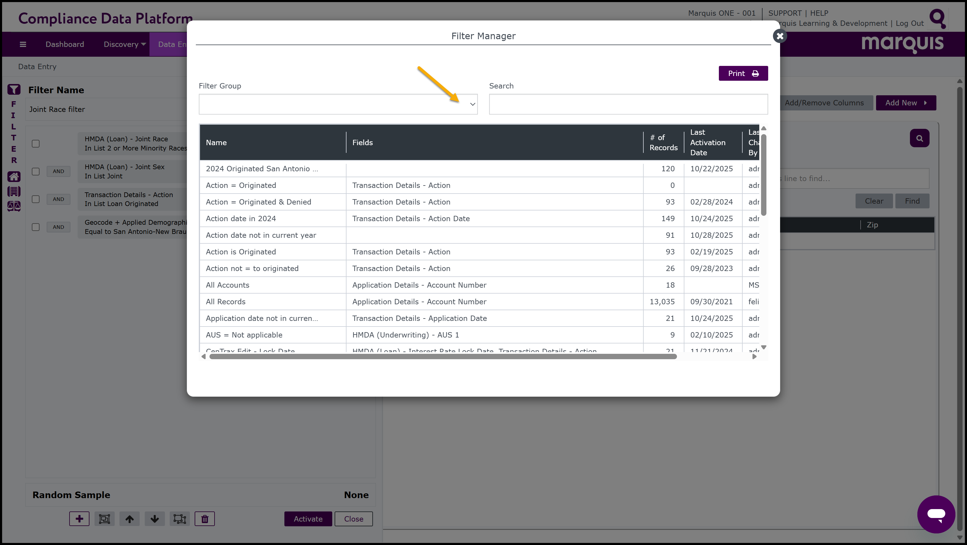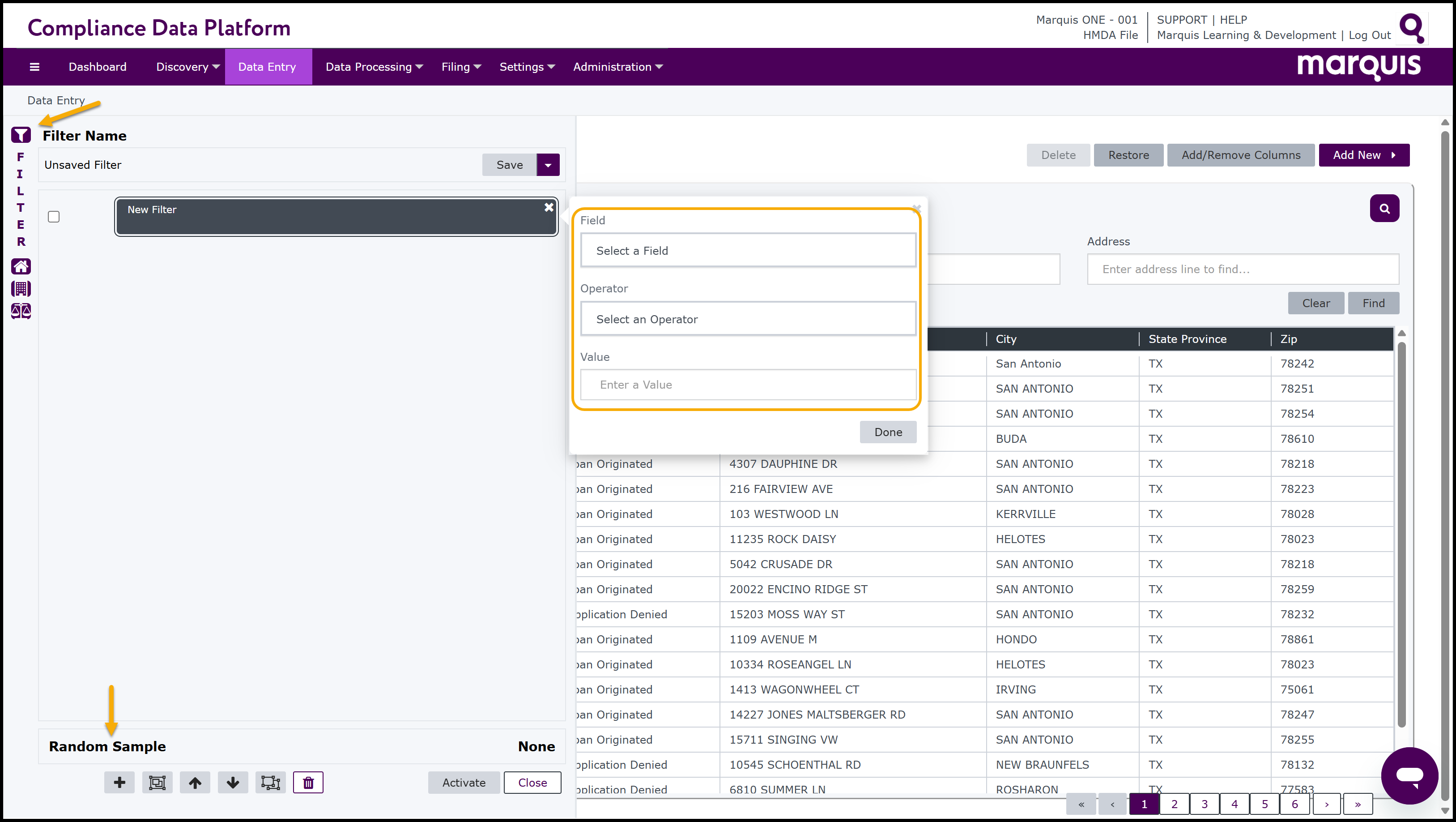 Note: The Compliance Data Platform also has short cuts to assist with locating and applying commonly used filters more quickly. On the left-hand side of the Filter window, there are 3 Fast Filter buttons:Fast HMDA,