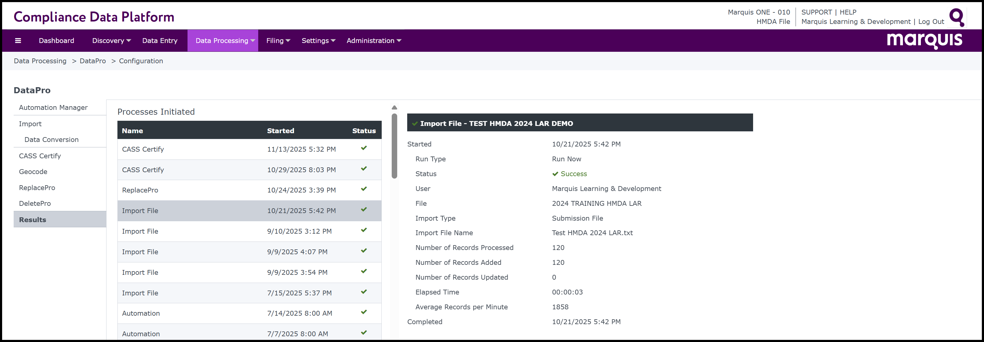 Step 12 To see results, click on the Results DataPro menu option located on the left-hand side of the page