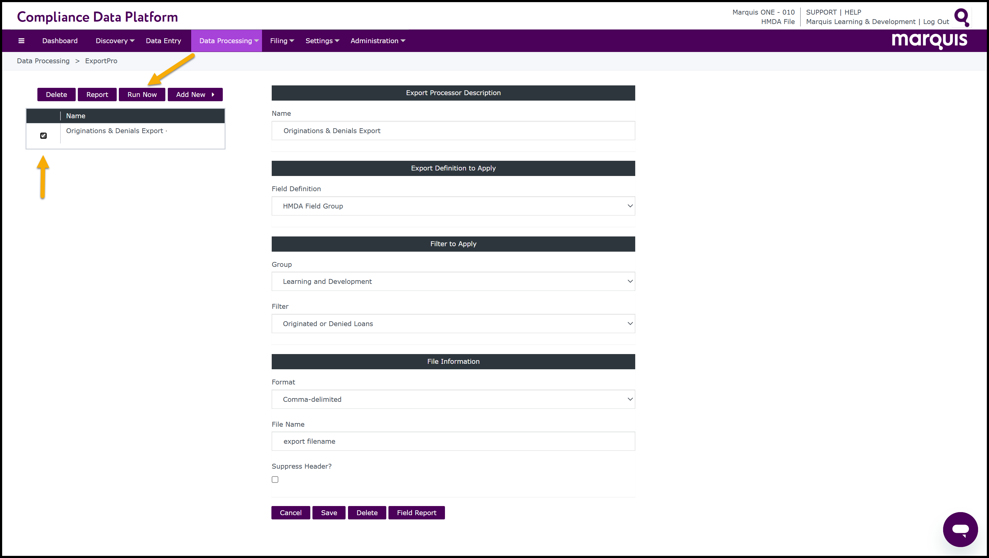 11.1 With the export items selected, click the Run Now button