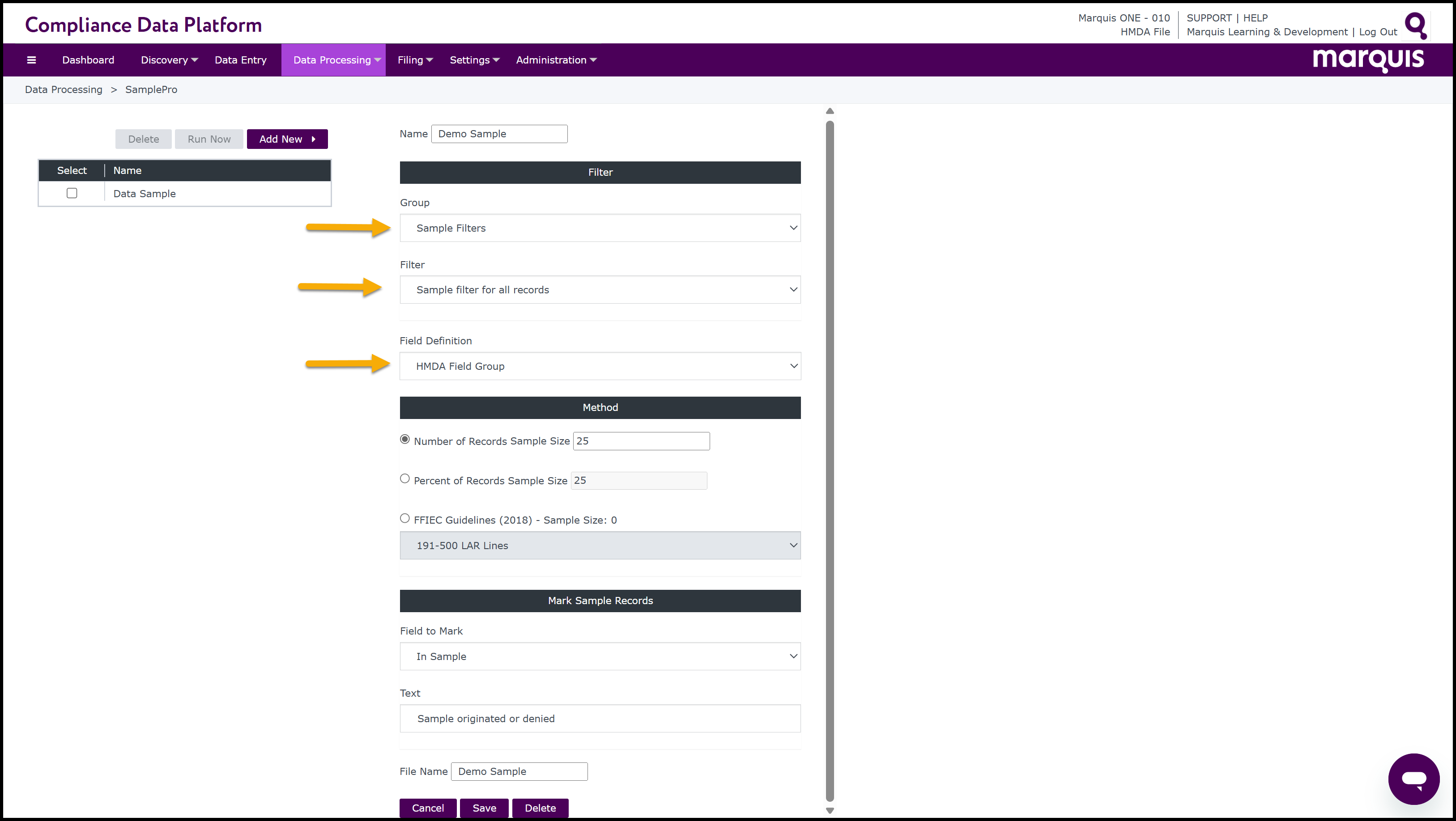 SamplePro is designed to give the ability to audit a sample of records using a random selection of records by size, percentage or using FFIEC’s Sample Guideline. The records can also be flagged in order to prevent the same record from being sampled again when doing a follow up audit.