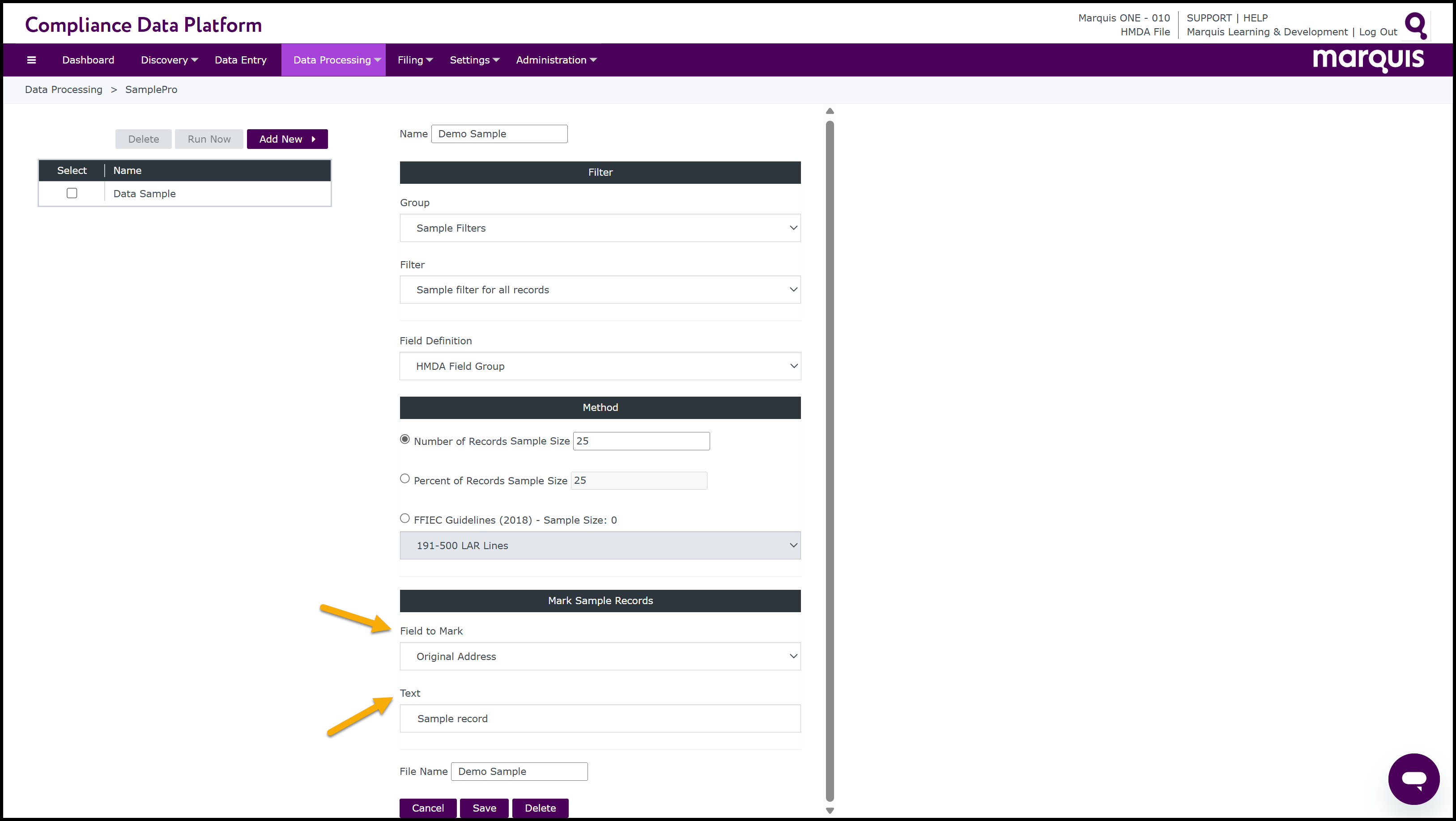Note: There is the ability to mark or flag records that have been sampled. A user defined field (UDF) can be selected to have the desired flag, character string, or date to be applied. However, the UDF will need to be created prior to setting up the Sample item. Please review the User Defined Fields procedural guide for a step by step process of creating a UDF.