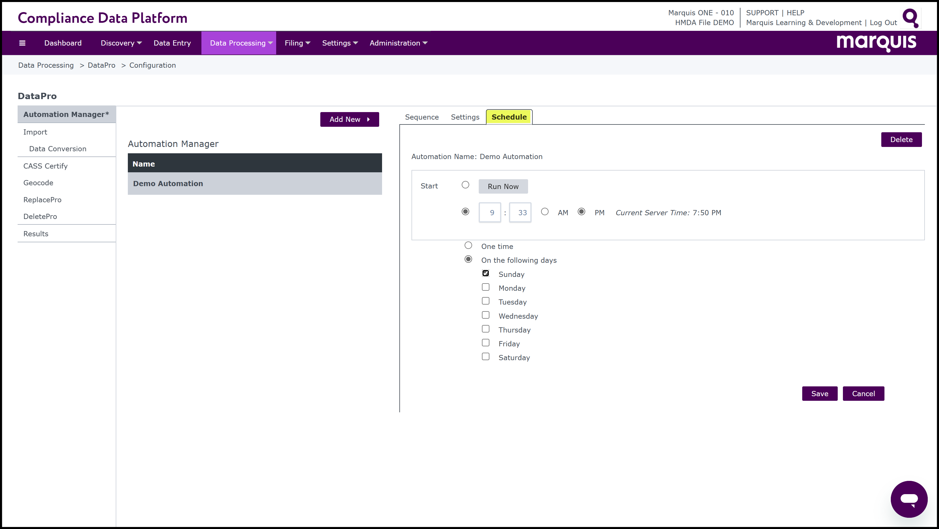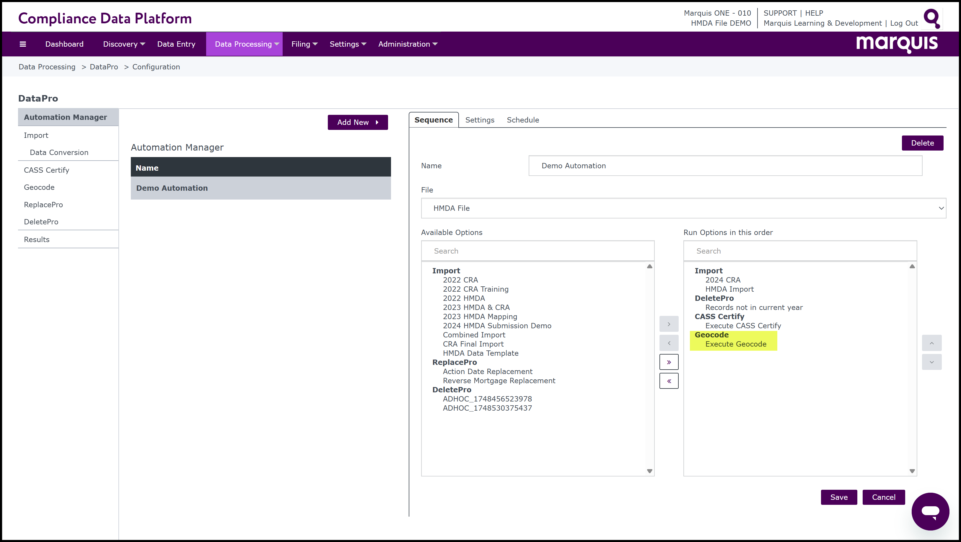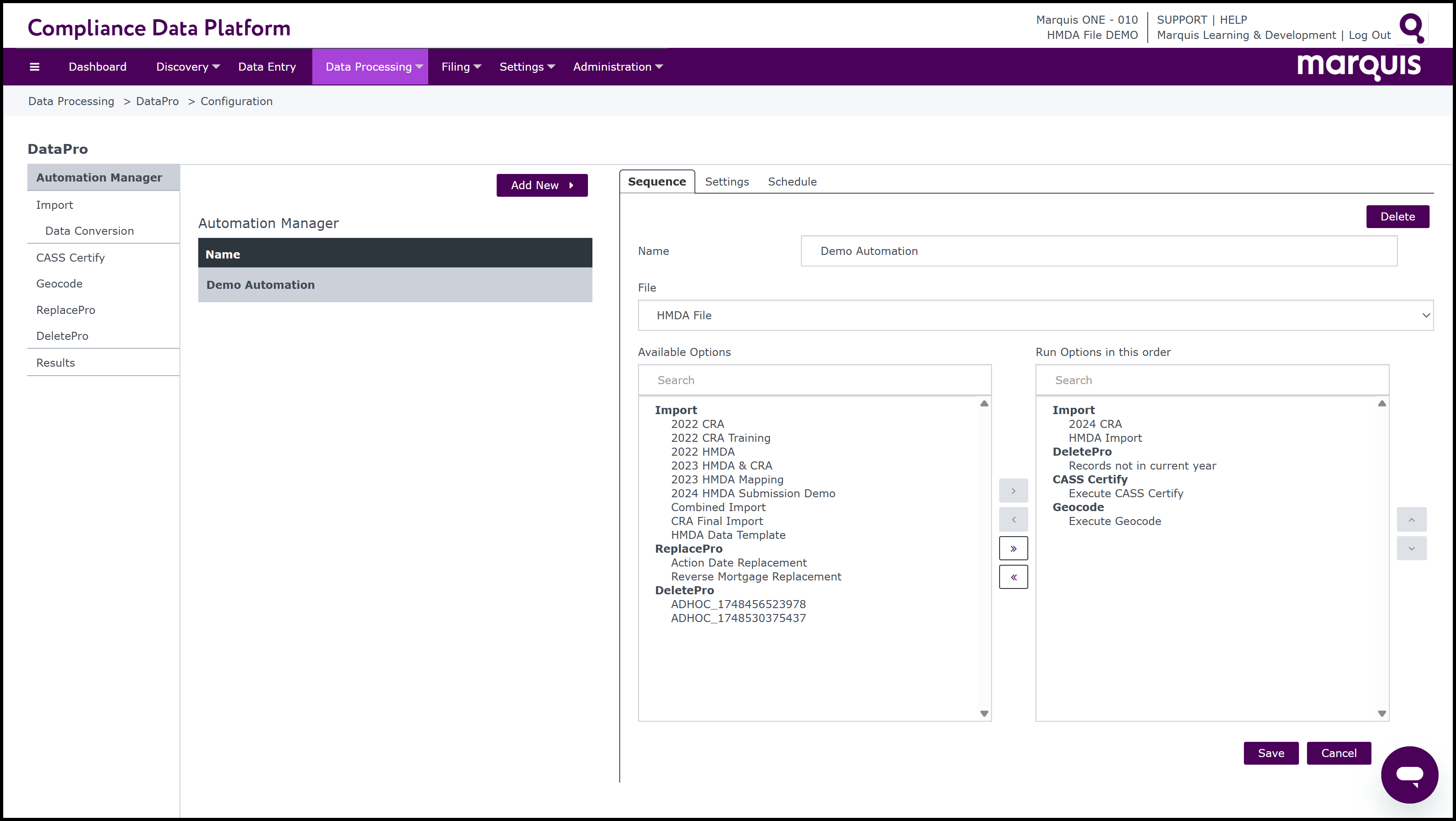 The Automation Manager allows for the automation of any/all processes in DataPro in any desired order.