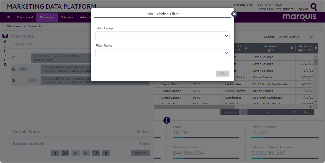 Step 5 To join another saved filter to the filter within the window, click the drop-down arrow next to Save