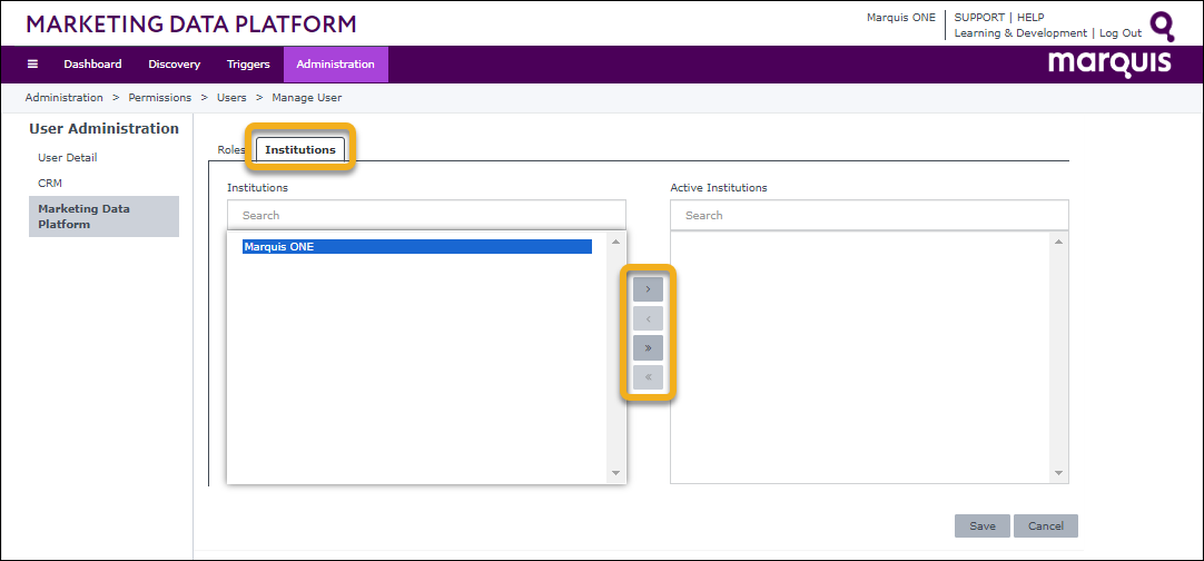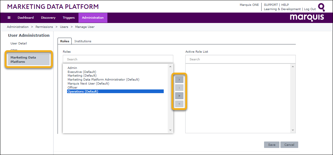 Step 9 Click Marketing Data Platform within the User Administration menu