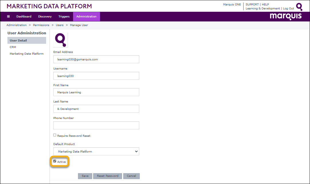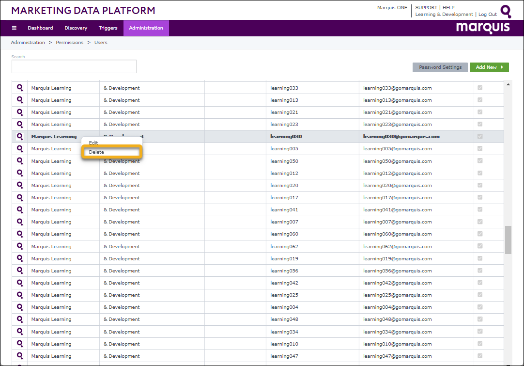 Note: Deactivating a user will simply disable the login, allowing for access to temporarily be discontinued. Deleting will remove the login completing, removing ties or ownership to reports created by the user account.
