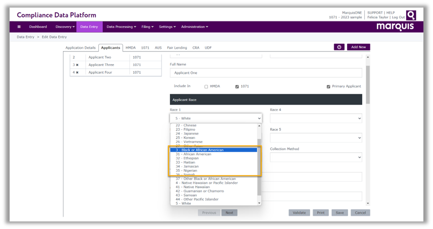 - The Black or African American sub-race codes and a free-form field have been added for the Applicant 1–4 Race fields. These codes are available for selection within Data Entry or importing within DataPro.