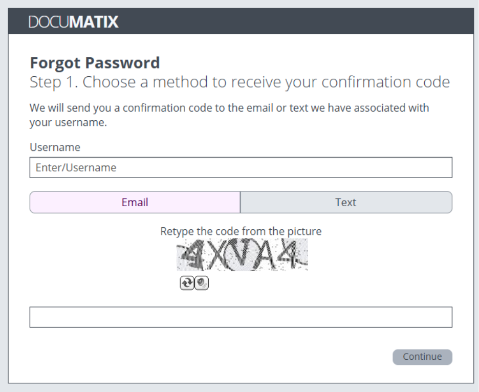 - You will see options to receive a reset code by Email or Text. Pick whichever works best for you.