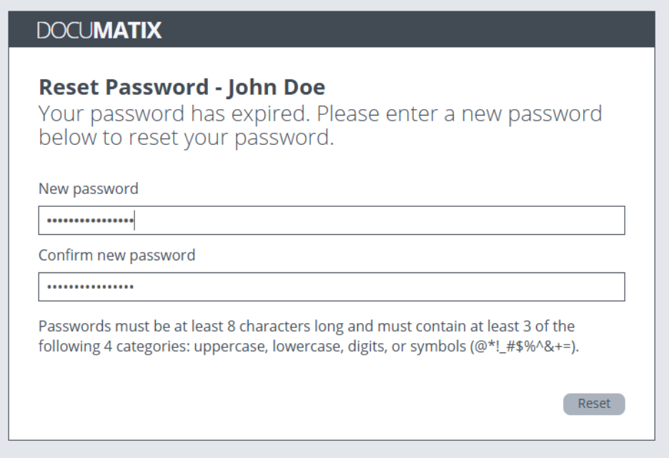 - Once your new password is entered, click the Reset button to confirm.