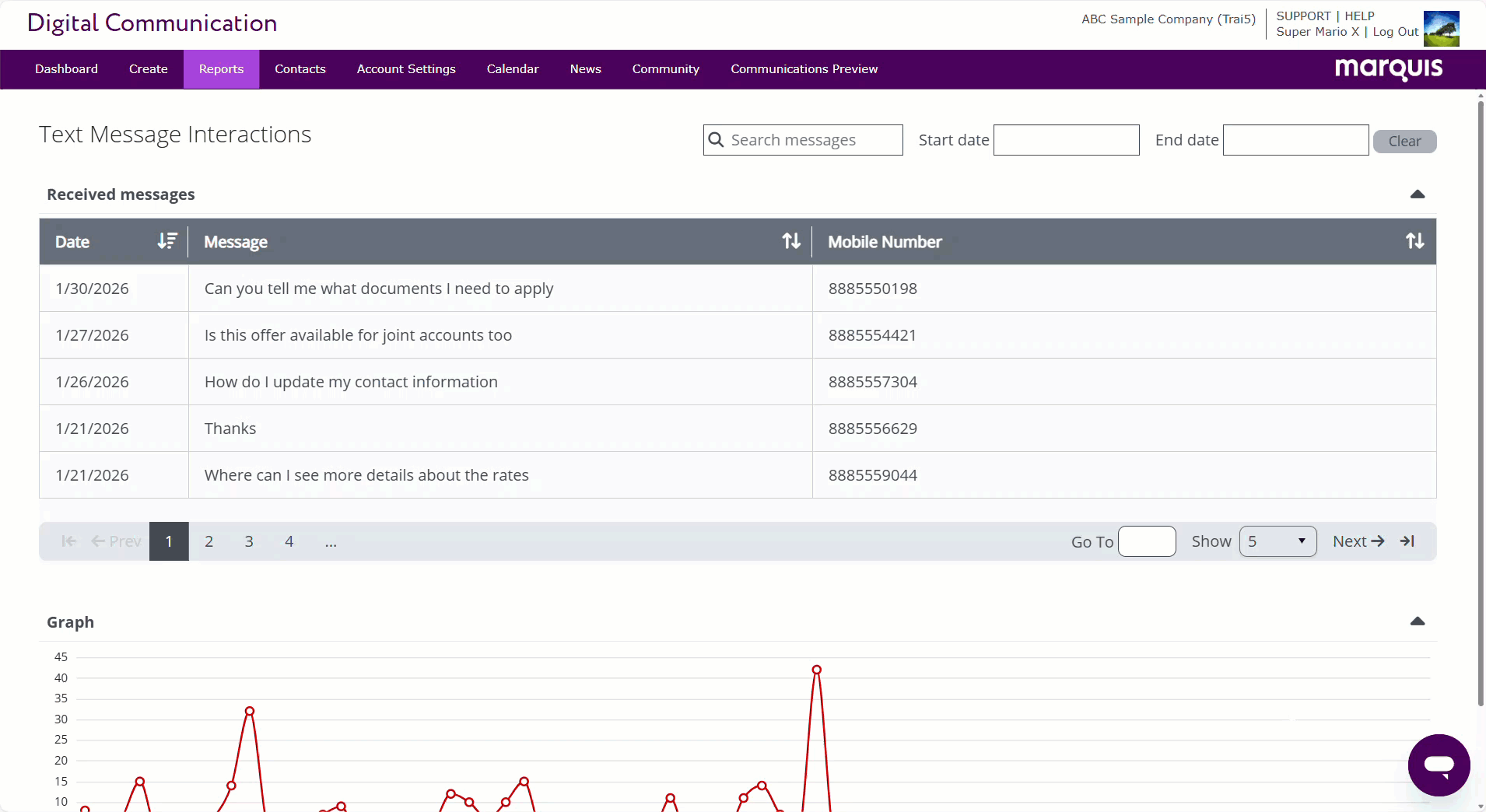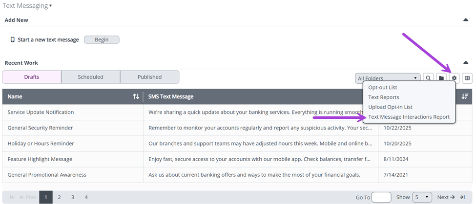 With Two Way Texting enabled, you can access all replies through the Text Message Interactions report. This report displays incoming responses and gives you a complete view of each conversation.