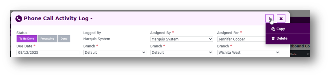 - Copy and Delete buttons for Activity Logs have been moved to ‘more options’ icon found next to the X on the new Activity Log header.
