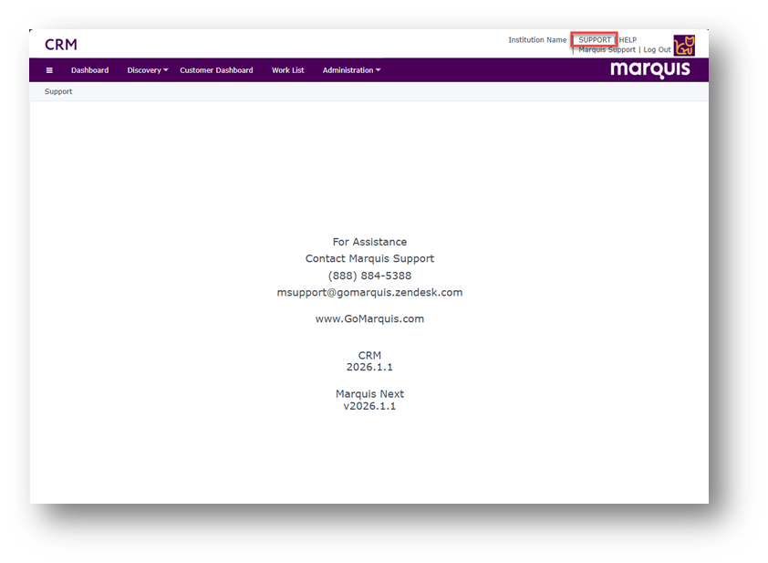 Ever wonder what version you are on? Simply click on the SUPPORT link at the top right of the CRM. If it doesn’t match the screenshot below, click here to schedule your upgrade.